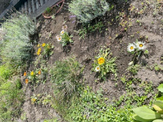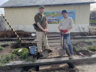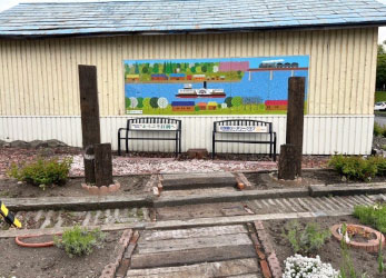 今年は江別駅前広場の花壇のお手入れに合わせて、新しくベンチを設置しました。草花を眺めながら一休み。以前に設置したイラスト看板の前に座って写真が撮れるようになりました。