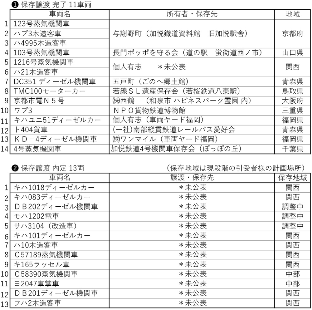 | ■ 旧加悦SL広場〔全27両〕の車両譲渡状況のご報告 |