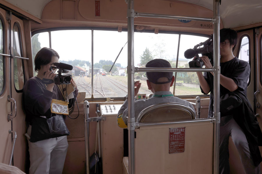 地元テレビ局の取材を受けつつ